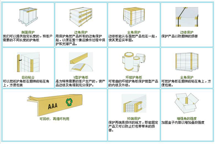 纸护角已经成为目前国际上最流行的包装产品之一,它主要用来代替木料包装及其他笨重的包装方式,同时具有价格低、份量轻、坚固、符合环保要求等特点。